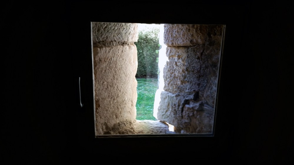 Château Labistoul – Bathroom window is a small slit in the thick, stone wall.